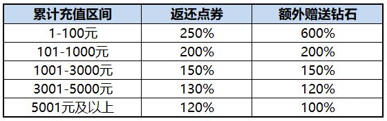 ※充值金额大于100元时,各区间的返还将累计计算