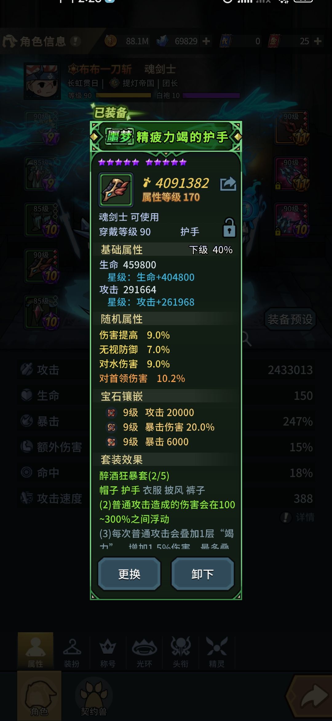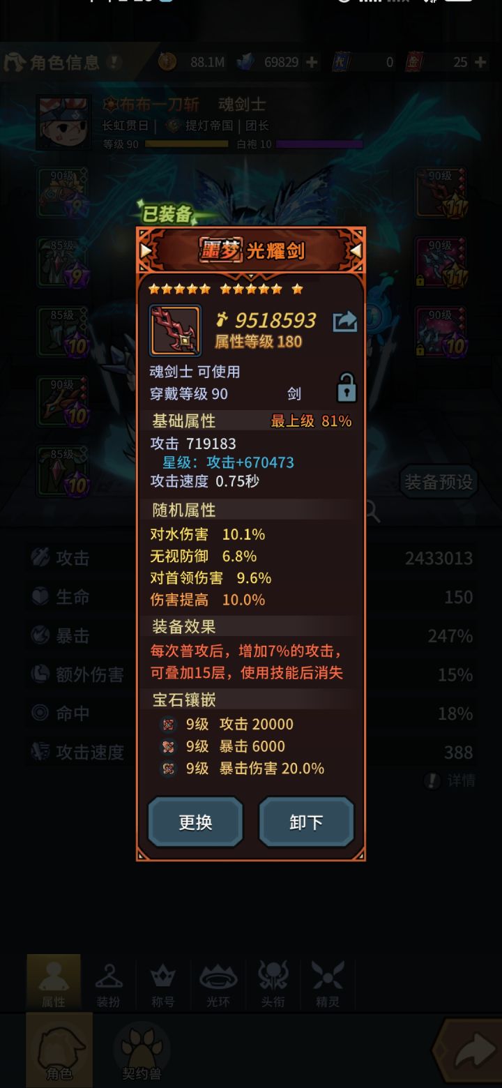 首先装备配置:光耀剑、冰封套、醉酒狂暴套2件、雷霆套3件,➕宠物鲨鱼、龙、虹猫。