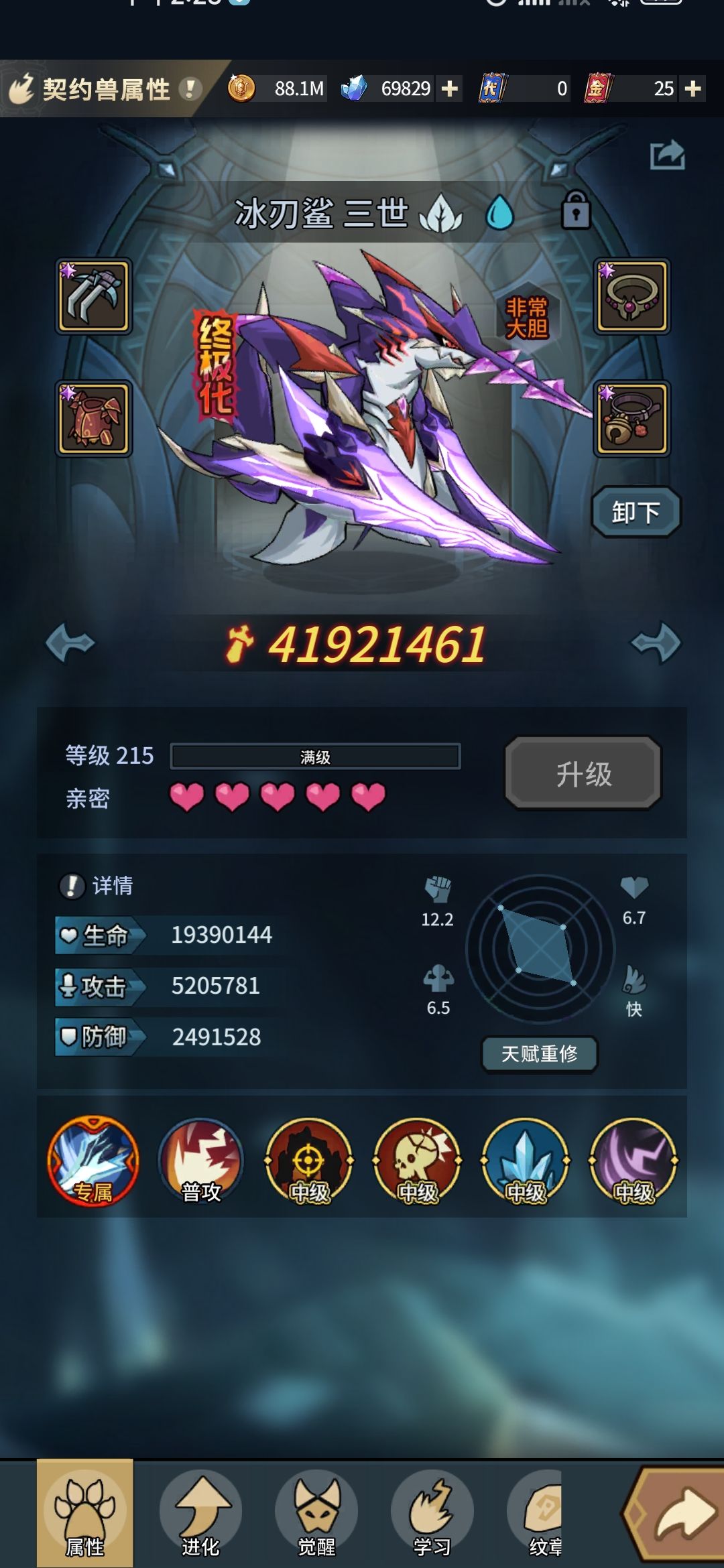 这一套下来伤害有4200B左右,词条洗练没有到极限,对水伤害也只有3个,可能贯穿词条在mvp这里比无视防御更好用,我也没有重新洗词条了,鲨鱼新技能还可以继续提升伤害,龙一本攻击极➕极品纹章面板可以更高,这些都是大家可以提升的方向,武器换刀也可以但是攻速也不能达到满速,应该需要一个满攻速词条,欢迎大家去测试。