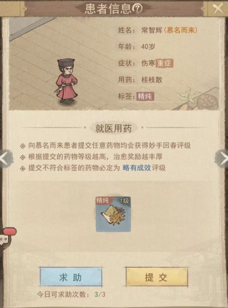 - 每人每日可被求助3次,需拥有对应标签药物。