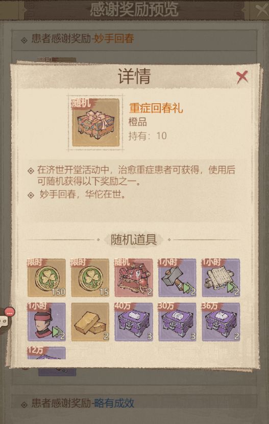 - 炼药 → 诊断病人症状 → 投喂对应标签药物 → 获取回礼(概率得“济世币”) → 兑换商店道具