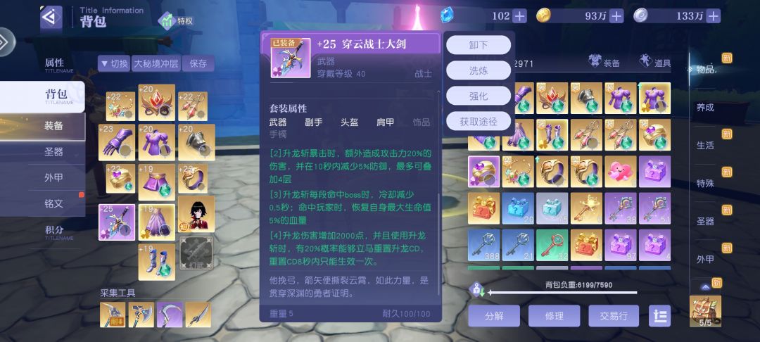 40以后的战士有2套出装也就是主月光或者主升龙。由于月光的核心在大秘境13-15层,所以在没有大佬带你混团的情况下个人建议先主升龙。