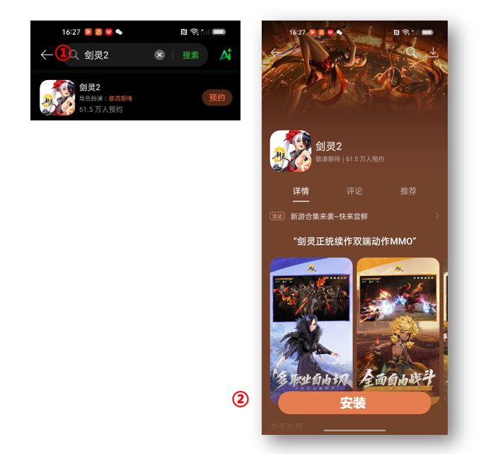 -安卓用户:通过华为应用市场、小米应用商店、OPPO软件商店等搜索“剑灵2”,选择官方正版下载。