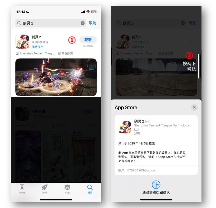 b.搜索 "剑灵2" ,点击 "下载游戏"(需登录QQ账号,支持QQ钱包支付内购)。