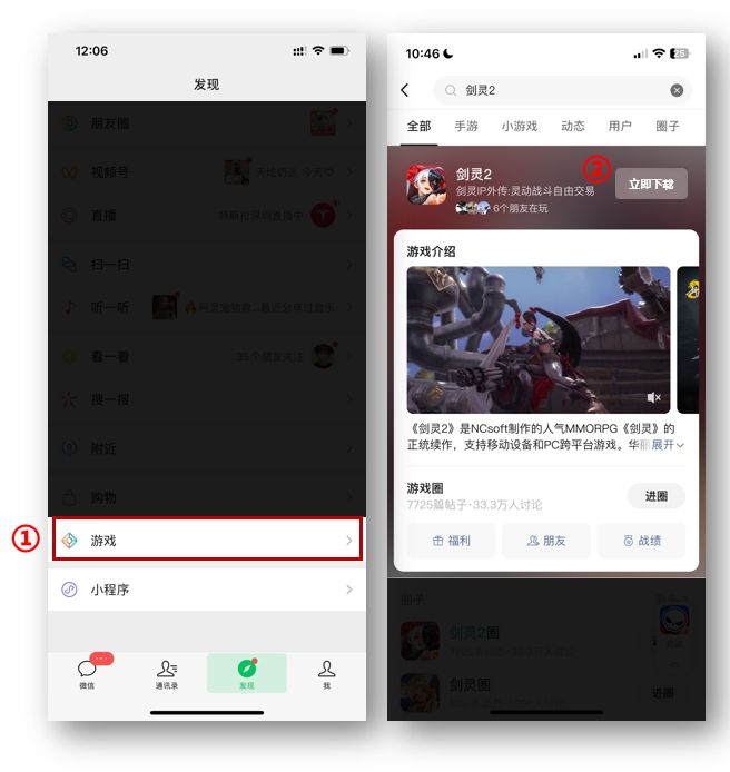 a.打开微信,点击底部"发现"→ "游戏" ,进入微信游戏中心。