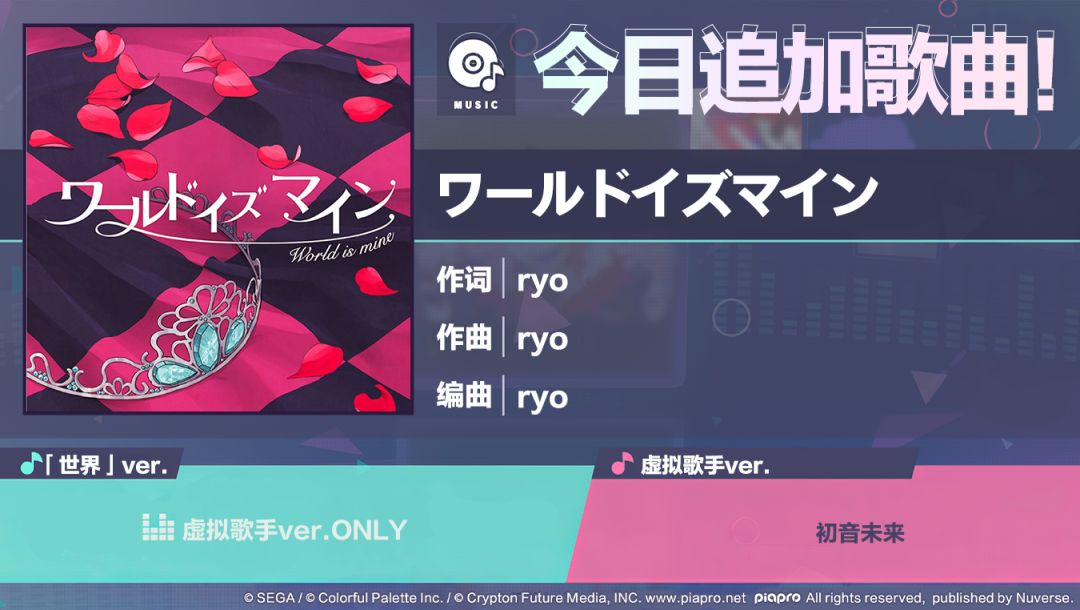 4/5 15:00起,将追加歌曲《ワールドイズマイン(World is Mine)》!