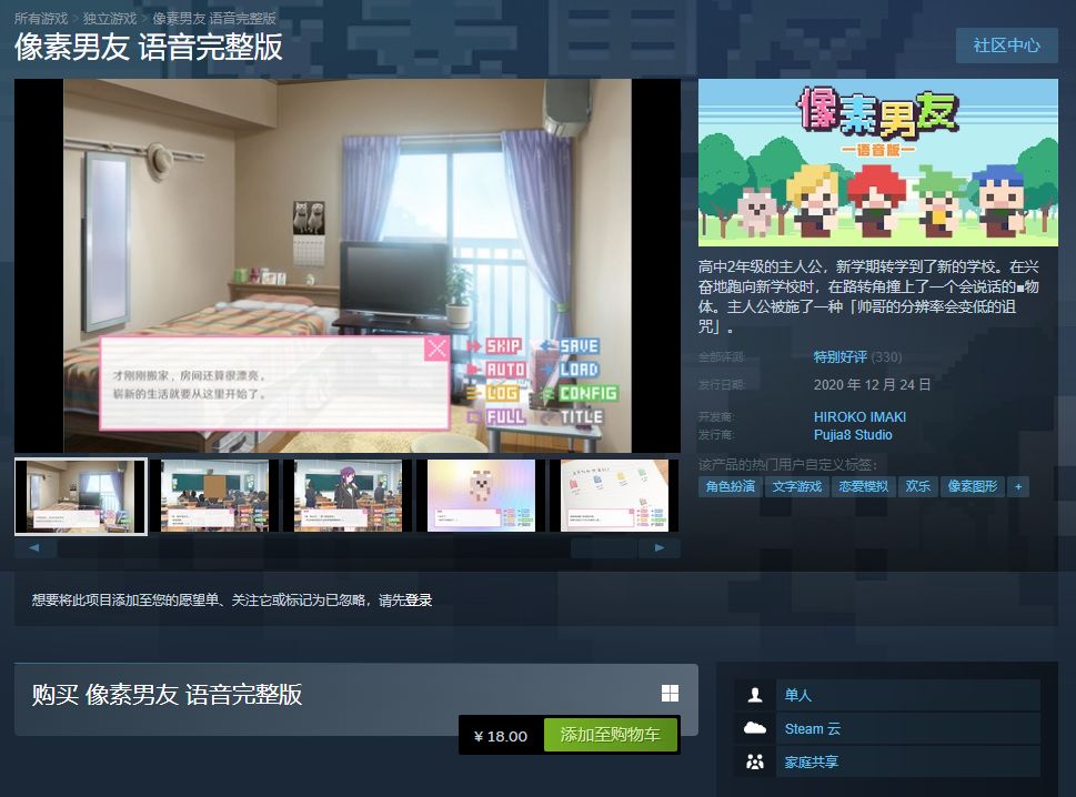顺便宣传一下我们Steam商城上的《像素男友 语音完整版》,包含每位角色的日语配音、额外2位可攻略角色、新剧情以及新CG哦,售价18元,感兴趣的小伙伴可以前往支持购买捏~