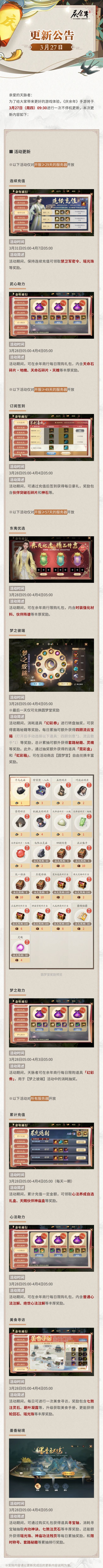 为了给大家带来更好的游戏体验,《庆余年》手游将于4月3日(周四)09:30进行一次停机版本更新,维护完成后游戏将更新为全新版本。