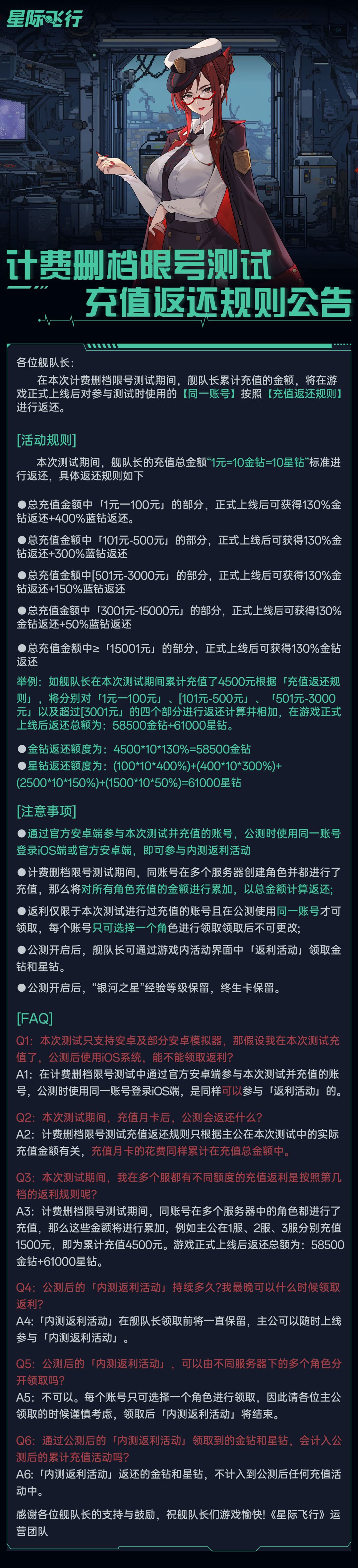 《星际飞行》「限量计费删档」测试充值返还规则一览