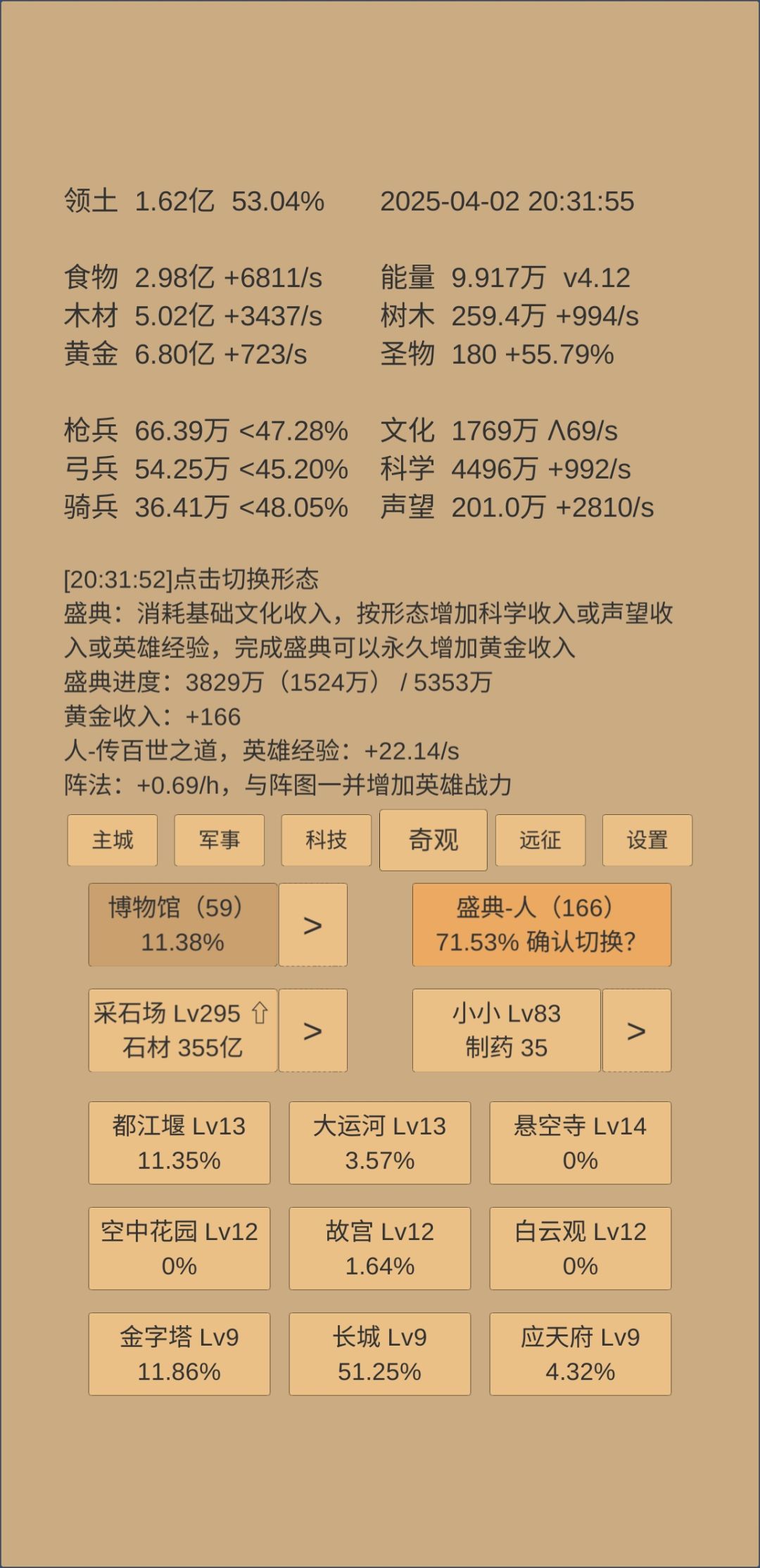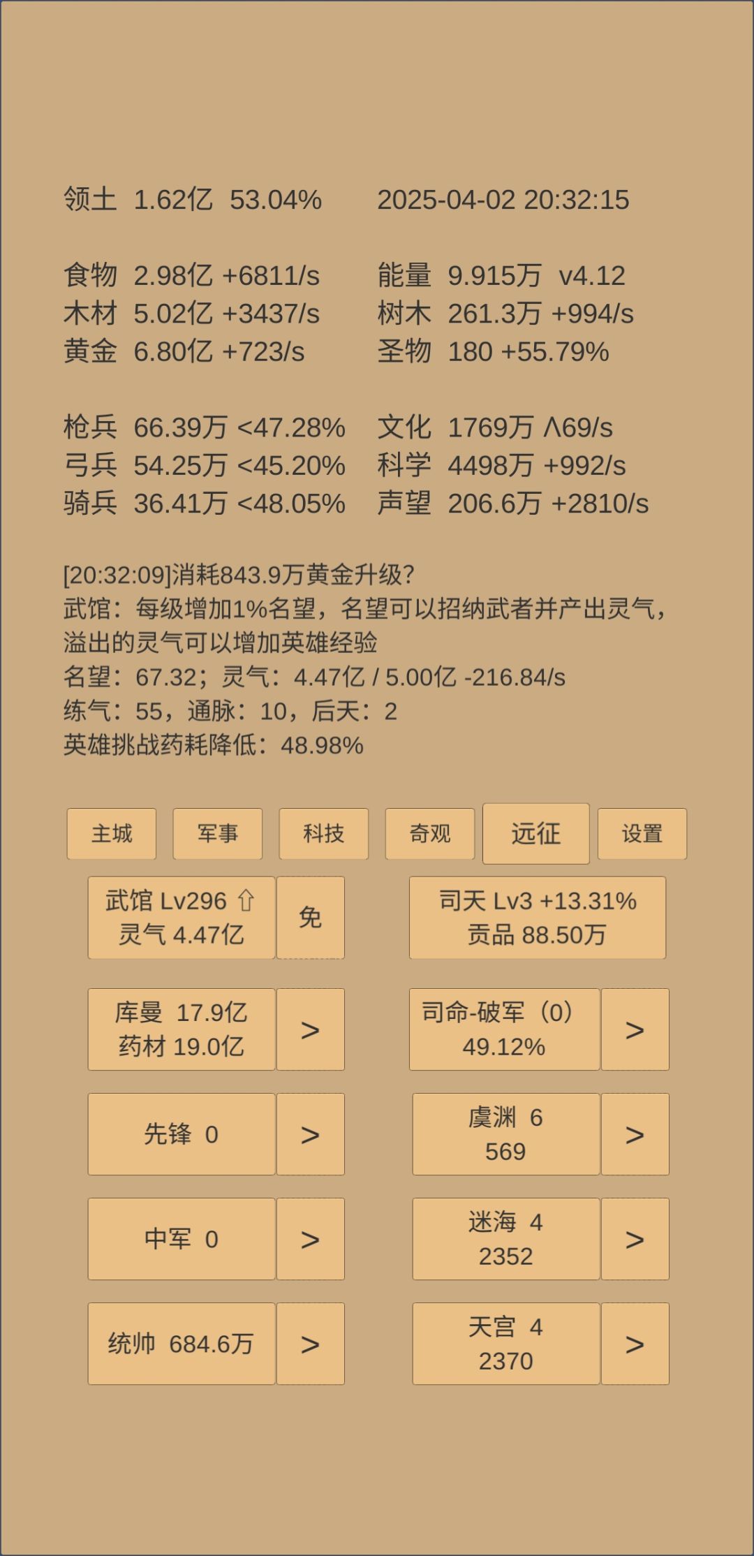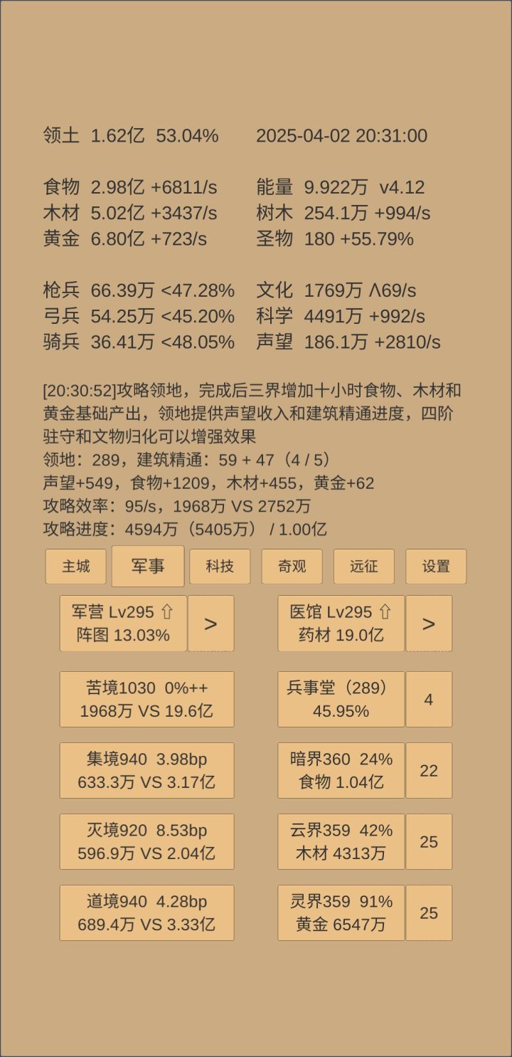 很长时间没更新了,以前十天换个样现在几个月区别也不大所以更新不频繁。后面这段时间所有的资源都喂给英雄升级封地了,因为很久没关注群里大佬的发言,没有数据的对比和换算,后面这段时间都是自己瞎玩,不知道是否走了死胡同。