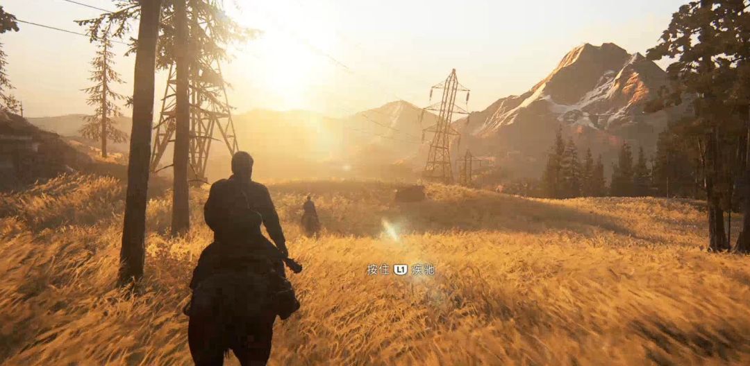 游戏一开始操作乔尔,骑马跟着弟弟汤米走,按住L1可加速疾驰。