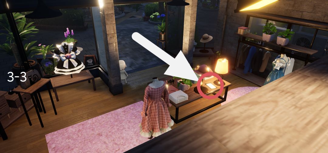 收集完2-6后出来往右走,在服装店里边的桌子上