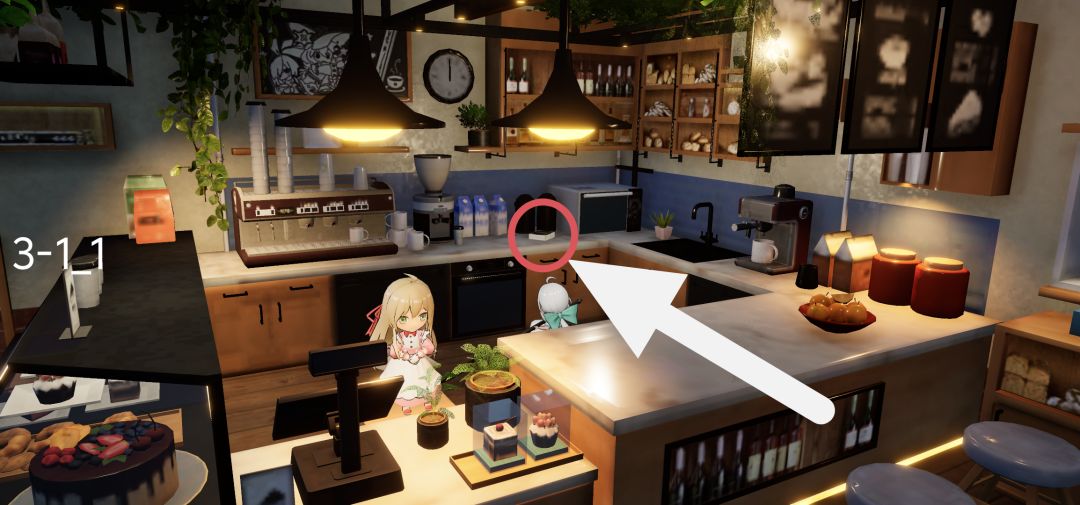 收集完1-6后,进入家具店左边的小旮旯(红框框住的区域)