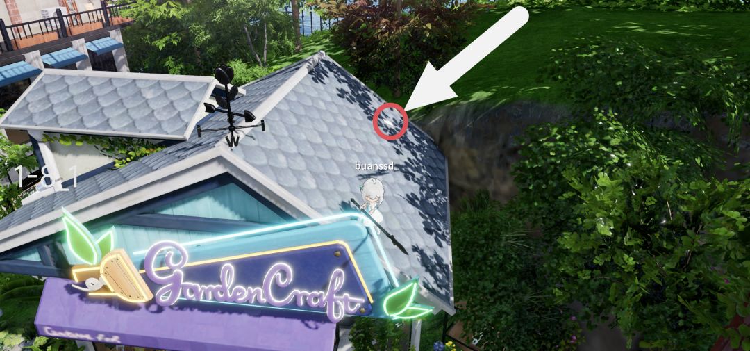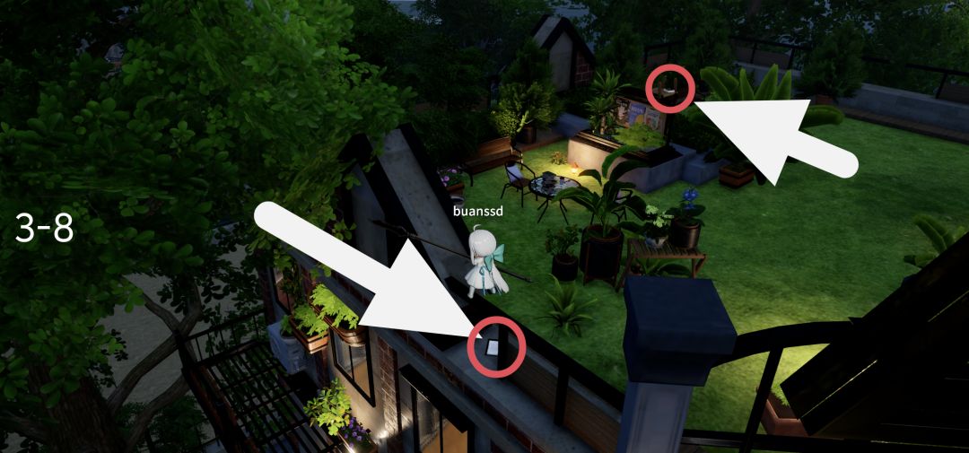 收集完1-8_1后,继续上山坡(也可以直接从蓝瓦屋顶跳过来),在旁边的红瓦屋顶上
