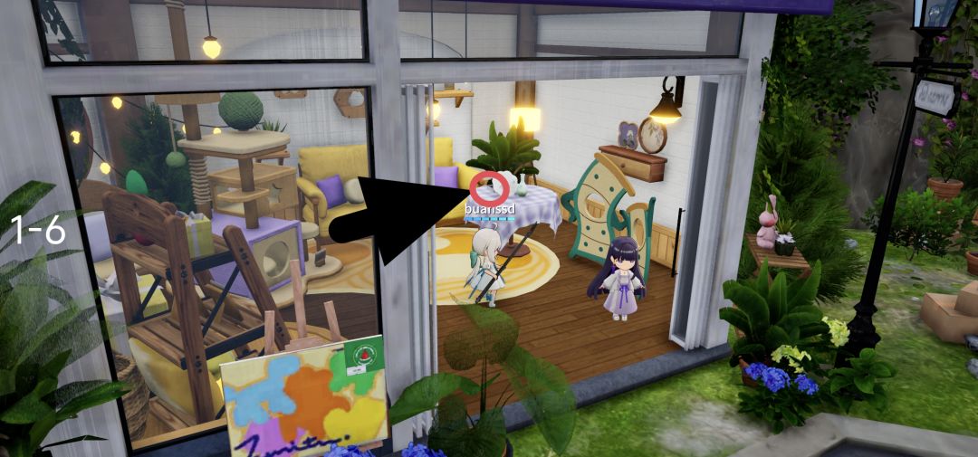 收集完1-5后进入旁边的家具店,在里面的圆桌上