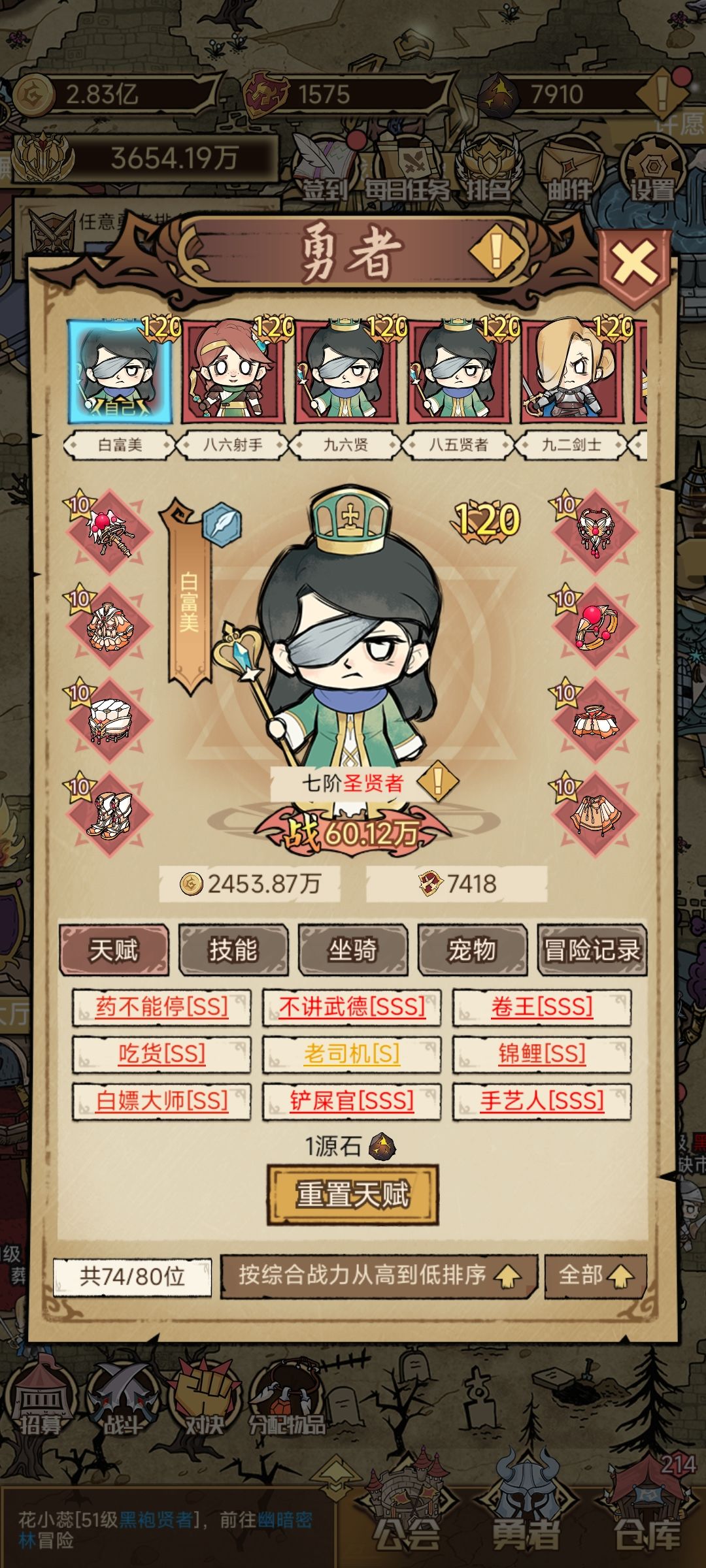 2.英雄属性想刷就刷,不想刷也行,想追求完美的话可以刷三s,卷王sss必刷,(没有也无所谓,都能玩),其次是药不能停,铲屎官,手艺人,不讲武德这四个,别的词条说是运气,其实都能成功的不用管他们,