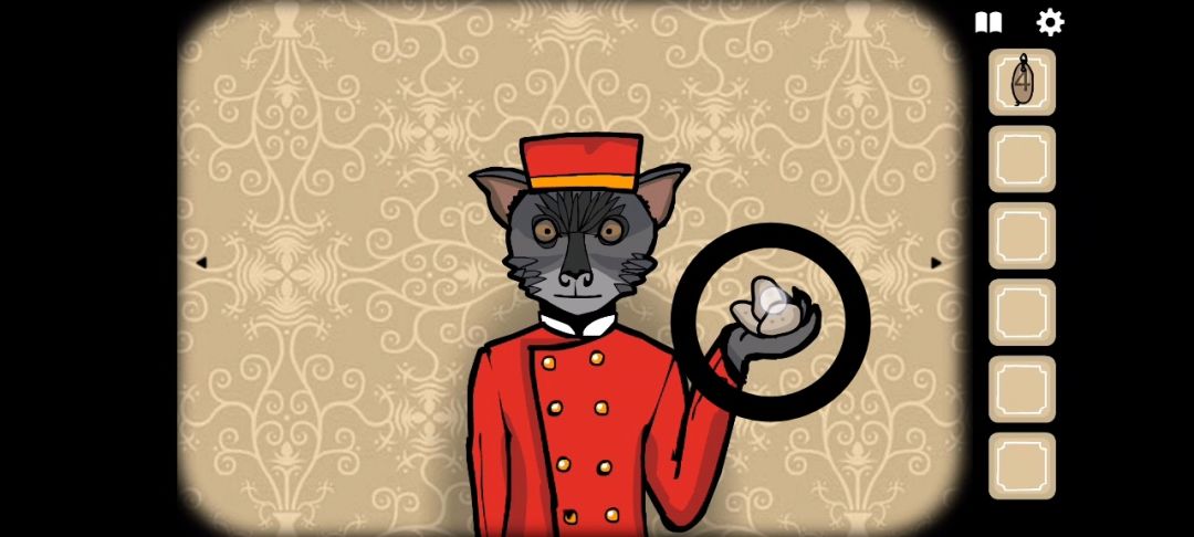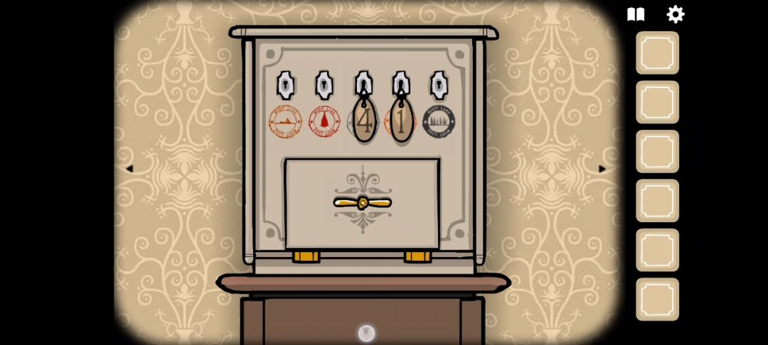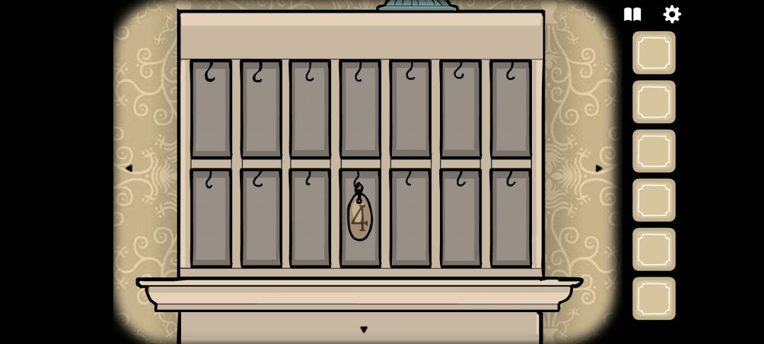◆左滑场景,点击乌鸦先生背后的客房钥匙架,拾取[4号钥匙]。