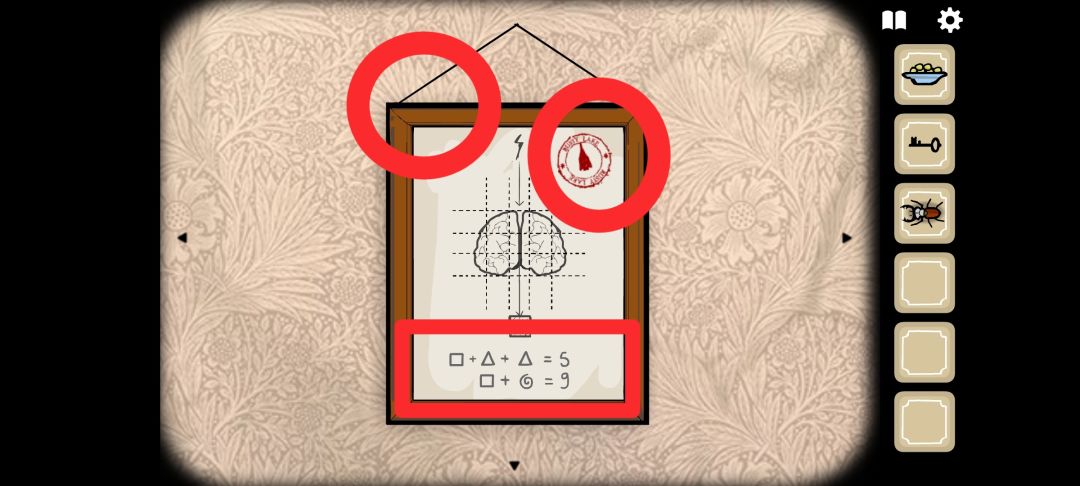 ◆回退场景后右滑,点击墙上的画,获得线索:
