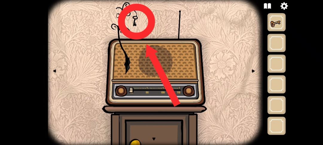 ◆回退场景后点击收音机,从后面拾取[纸片],并点击收音机,开始解谜:点击右边按钮3次、左边按钮1一次、右边按钮1次、左边按钮3次。解谜成功后,长出树枝,拾取[钥匙(黑色)]。