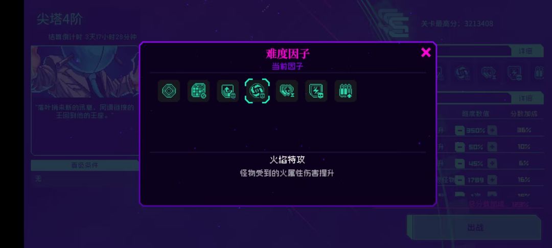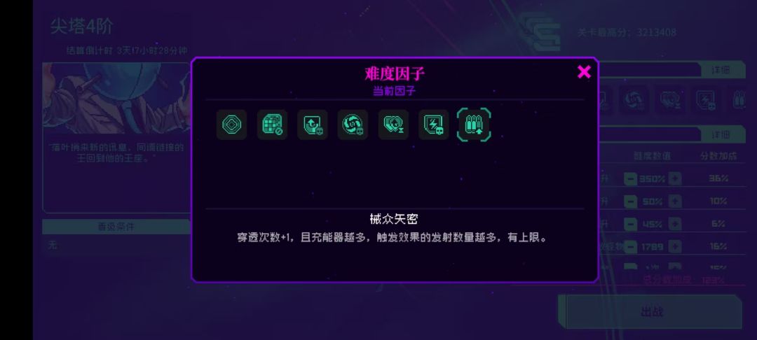 本期除了火焰伤害增加以外有两个全新的因子,一个是增加碰撞伤害提升,另一个是械众矢密效果为充能器越多,触发效果的发射数量越多,经测试械众矢密的上限是+3,也就是说火莲带乾坤套的情况下,再任意带一种充能器即可吃满这个效果,在乾坤套的套装测评我们分析过,乾坤套在黑海中表现尚可的原因主要是黑海可以增加充能器发射的数量,现在同调也有了这一特性,所以这期用乾坤套来打同调,但是乾坤套还不能彻底解决第三波手短的问题,所以我们选择近期刚刚崛起的火二(炽热之心)套装。