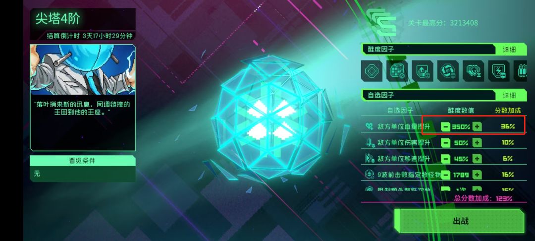 第一个主要改动是加成从119%提升到了123%,敌方单位血量显著提高。