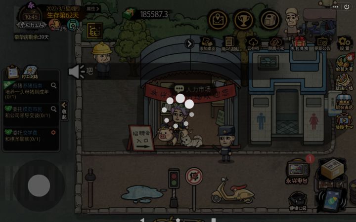 前几天开始玩,然后一直打不开这个人力市场,就一直卡在这里,脱离卡死也移动不了……