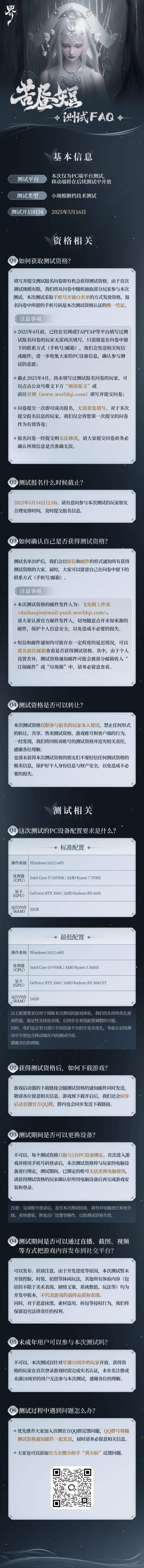 相信大家都非常关心此次“苦昼短”测试资格的相关信息!如何报名参加测试?什么时候发放测试资格?设备要求是什么?仙长们的疑虑,小黄一站式统统解决!
