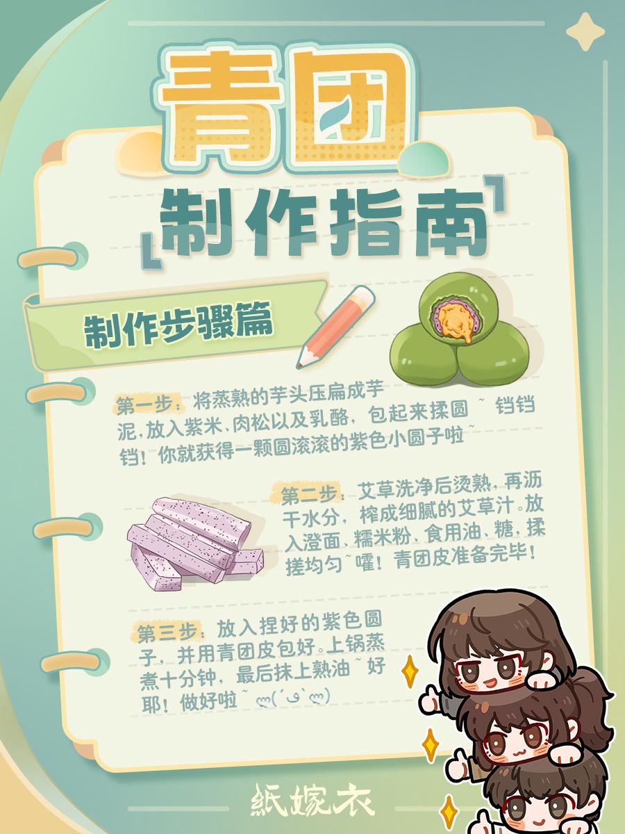 嘿嘿~阿纸特地带来有一份「青团制作指南」送给有需要的纸迷~!是浮路市三位热心学生的分享哦~诶!难道是他们刚好也要去采艾草吗~?