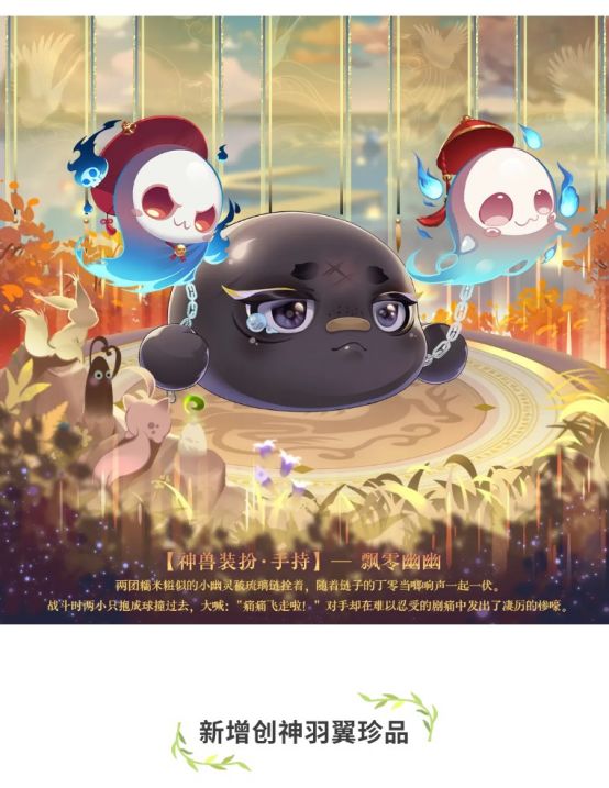 新增1个神兽装扮手持部件:飘零幽幽,消耗飘零幽幽碎片进行合成即可获得装扮;消耗对应灵能可对装扮进行升级