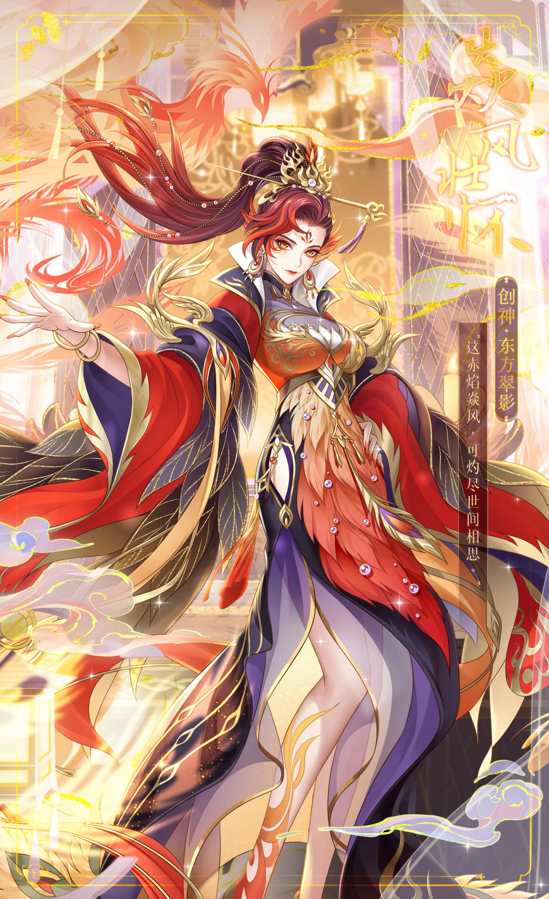 赤金璎珞坠破满殿烛影,朱雀尾翎正撕裂她裙摆的流霞。宫灯将鎏金瞳孔映成熔浆漩涡,披帛绞住欲飞的凤翅投下铁血重影。"这鸾镜照不穿的九重宫阙——"指尖掠过发间火珊瑚长簪,"便烧成赤翎,作你我登云的天阶罢。"