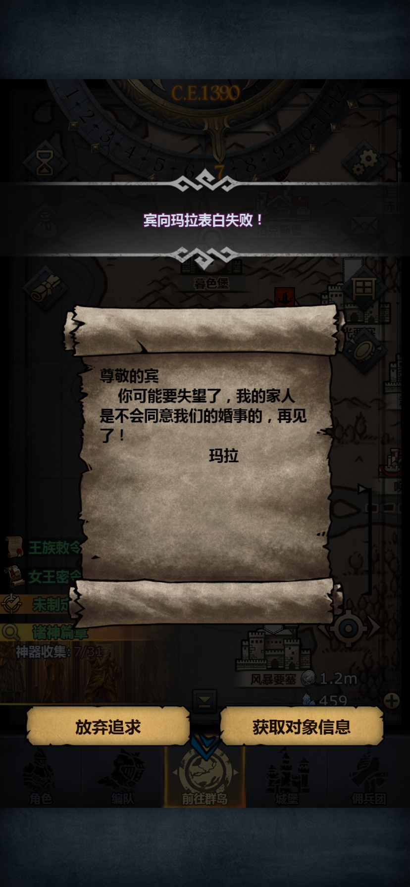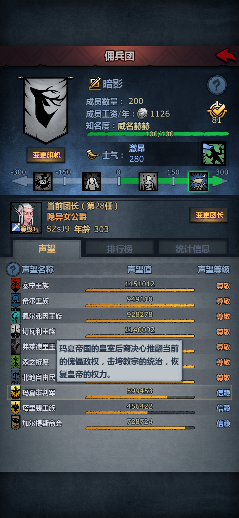 找个已经尊敬得国家给他爵位拉到伯爵,然后去给他相亲!138岁还带个卑劣,能相亲成功才怪。要得就是他不能成功,失败了就是获取相亲对象信息,把对象抓到城堡小黑屋,随便上个公爵表白。21300声望到手。一年稳定4到5个,记得二月拜神哦!