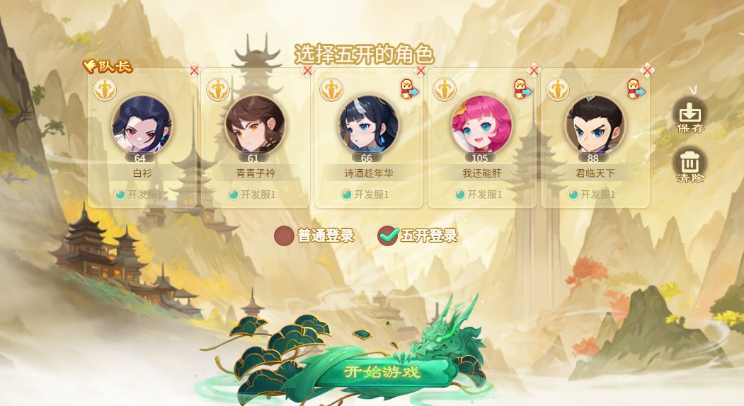 先准备建五个账号,再登录界面选择“五开登录”即可实现,就算找不到队友也能组队打怪