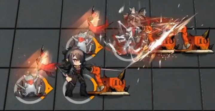 普攻从戳击转为斩击,普攻特效也更加华丽,红旗底色搭配金色四线谱,击打在装置上还会有金色音符四散迸射
