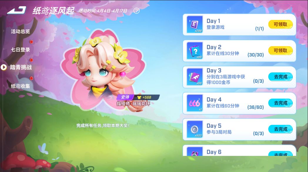 活动期间,每日解锁1个任务,完成任务将获得对应奖励