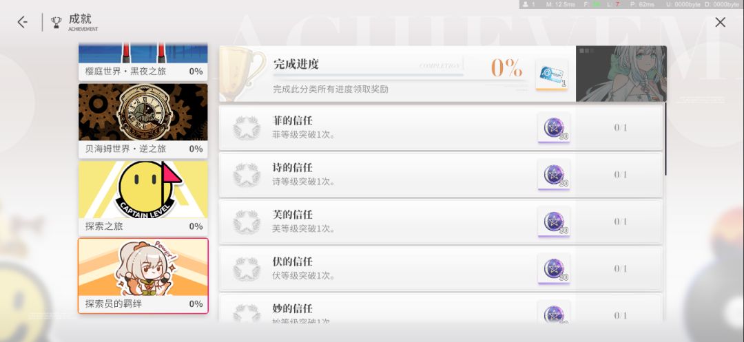 我们在成就中增加了队长升级“探索之旅”成就以及探索员突破“探索员的羁绊”,完成相应的等级升级、探索员突破即可获得大量星石奖励,可在成就面板直接领取。