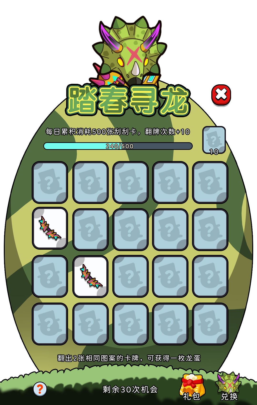 的卡片,可获得一枚龙蛋,可用于兑换相应的道具快来比拼一下记忆力吧~