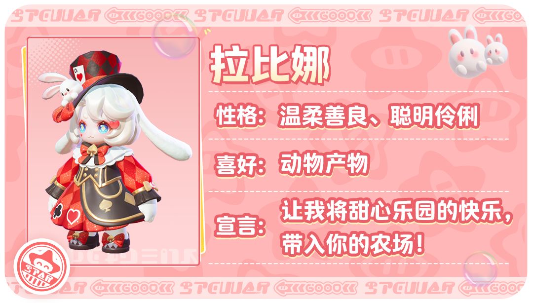 三位新居民们已经来到农场多日啦!神秘的魔术兔兔、善良的机器人、以及热带风情的美丽舞者,星宝们都邀请TA们来农场定居了吗?为了让大家的农场更加“其乐融融”,贴心的星妹带来了三位新居民的绝密档案;以及新居民们来到农场后的奇闻趣事!快来和星妹一起看看吧~