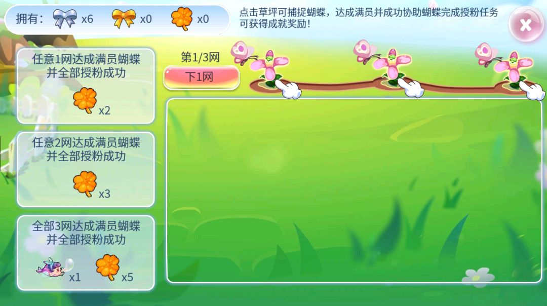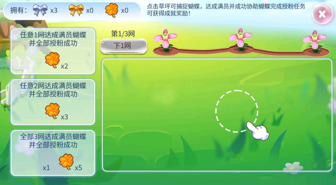 捕捉到蝴蝶后,点击还多完成授粉任务,收集道具积分奖励,完成后就可以到领奖处领奖啦!
