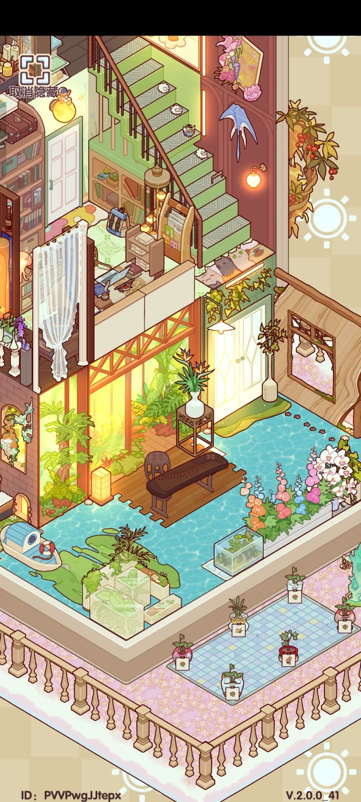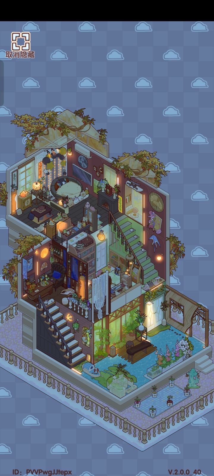 第一次尝试把经典小墅的第一层做成水面,由于刚完一个月还缺少很多的东西,最后用了一些地毯假装成平台,在上面放家具或者作为入户地板增加水面实感