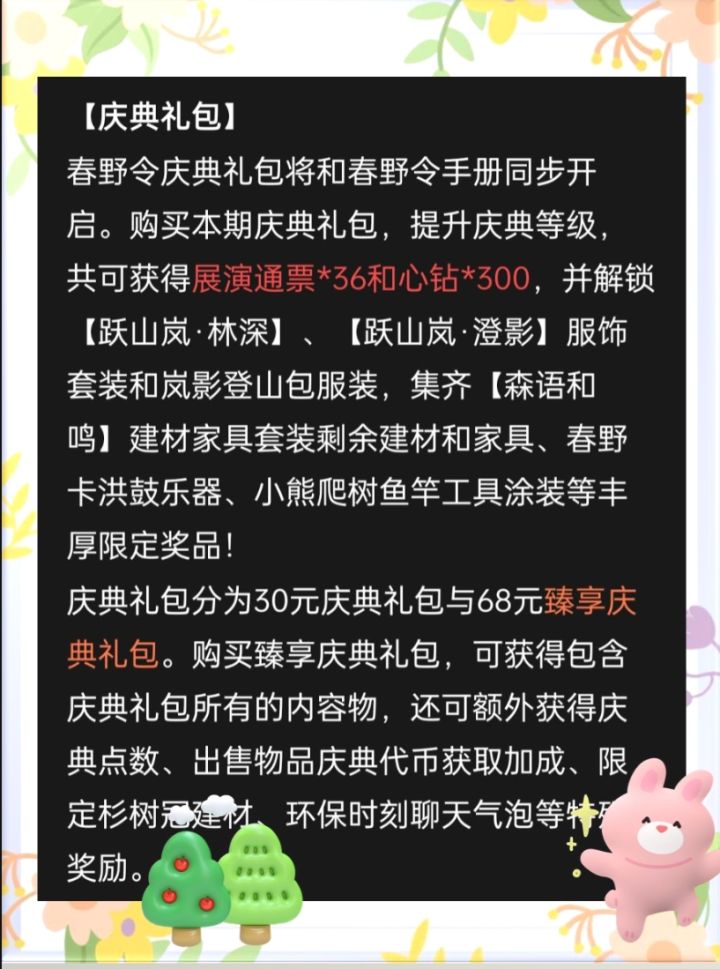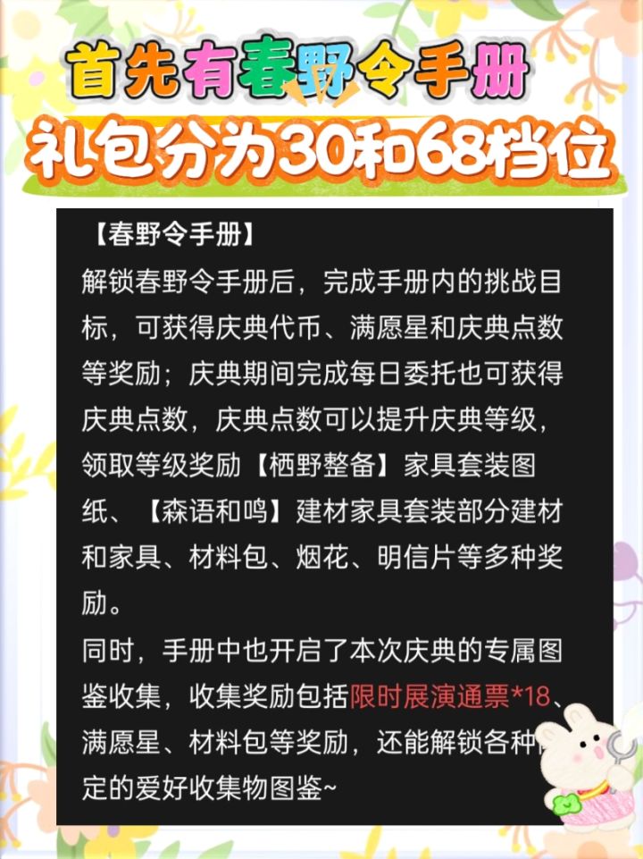 心动小镇的第一个庆典-春野令将在4月5号上线,接下来我会为大家讲一下大概的内容~