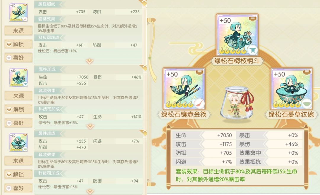 简评:叠层增益本来就是BOSS专属,在此基础上还是很好的辅助套,基础暴击非常高,可以给副c,亦c亦辅,下位月白釉先凑齐就先凑合用