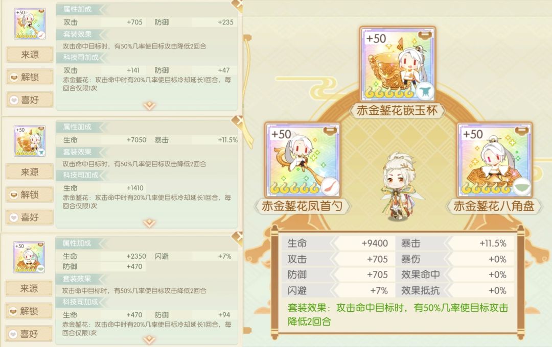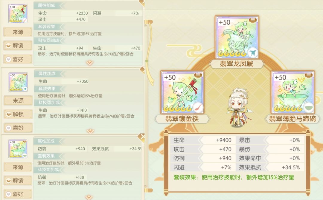 简评:很难用不到,只要阵容有辅助食魂都可以带,还兼具一定的效果命中,辅助亲妈套。遗珠通关速刷必备,一个阵容一套,可以先拿下位珍膳戗金凑数,但最终还是需要替换