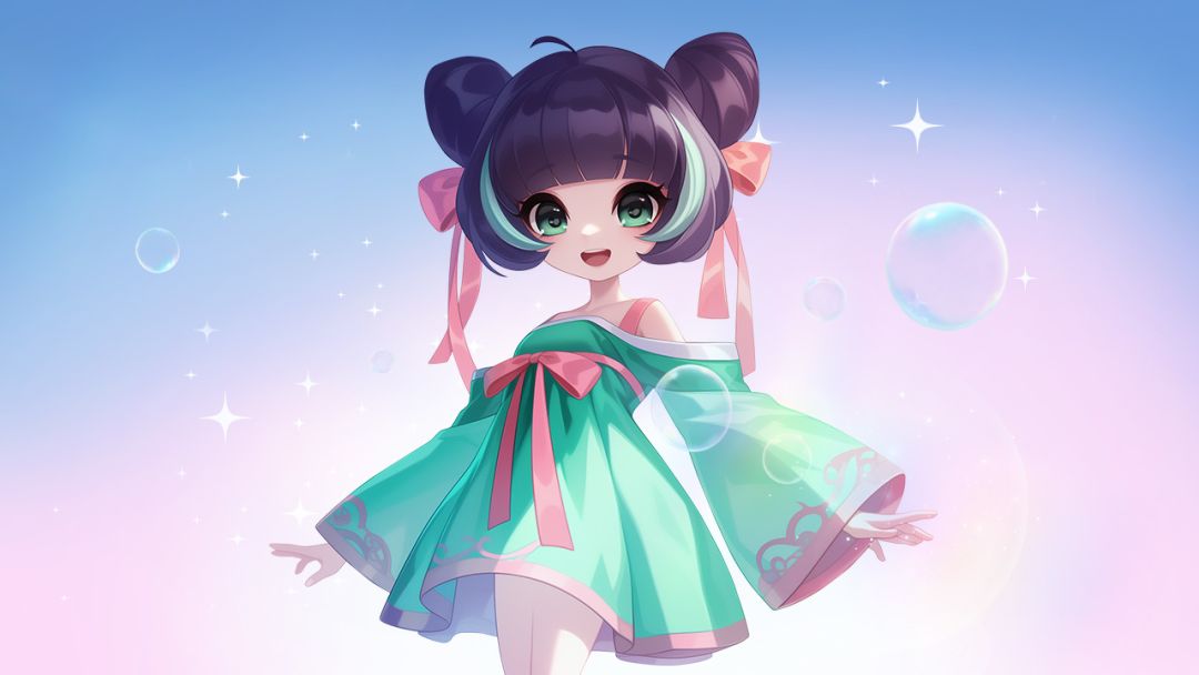 清明限定款时装「纸鸢踏歌」正式上架!水碧色齐胸襦裙飘逸脱俗,仿佛一阵绿色的风掠过,带起层层涟漪。嫩粉色的帛带点缀其上,则为整体装扮增添了一抹亮色,发髻则巧妙地挽成双丸子头走路时脚边两只嫩黄的脚镯叮咚作响,尽显少女萝莉的活力与灵动~炎热的夏日即将到来,继承者们快穿上它,和小超一起感受这抹绿色的清新!