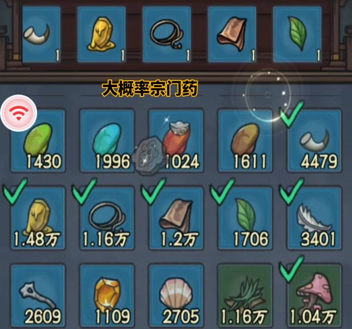 图二,最后一个材料用9,其他都是1,大概率出宗门药
