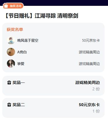 (已开奖)【节日赠礼】江湖寻踪 清明祭剑,限时抽奖送京东卡