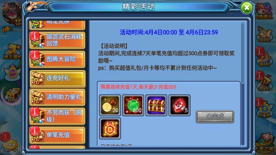 ps:购买超值礼包/月卡等均不累计到任何活动中~