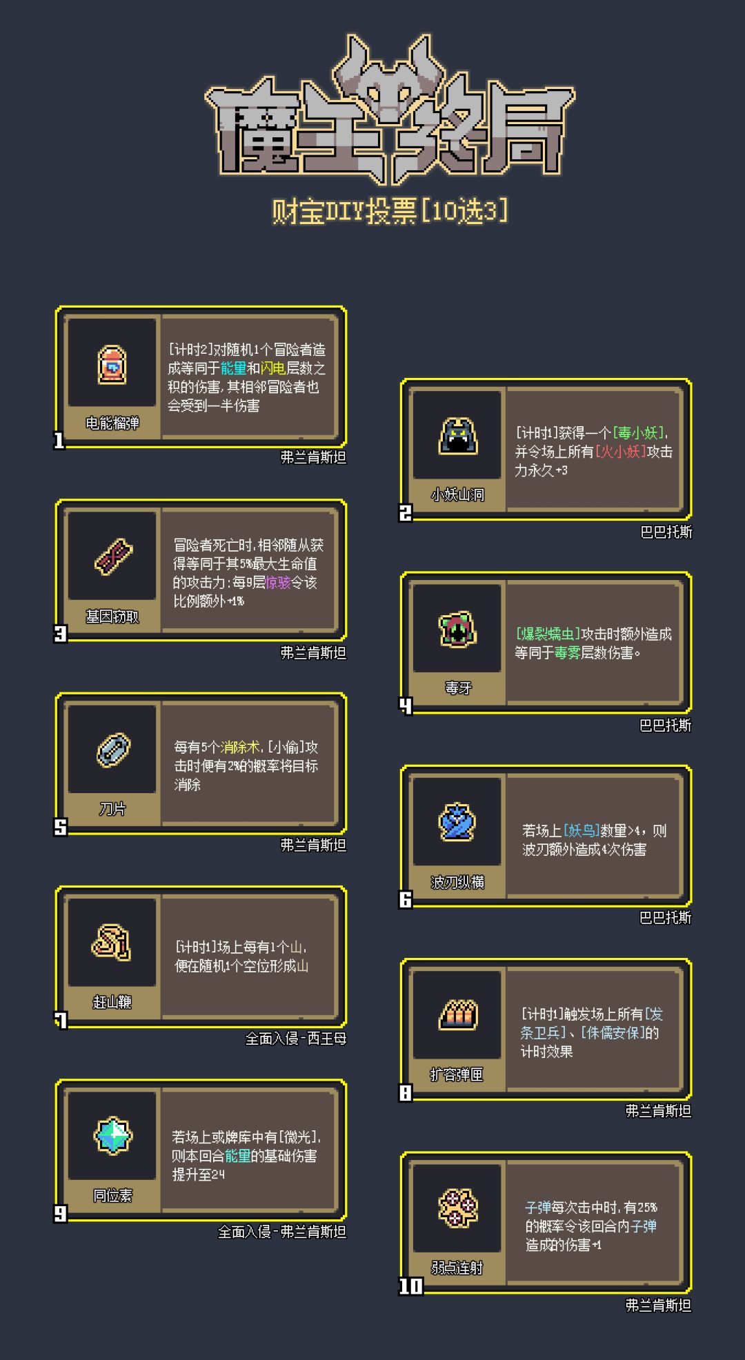 票数最高的前3个会被更新进《魔王终局》下一次更新版本中,