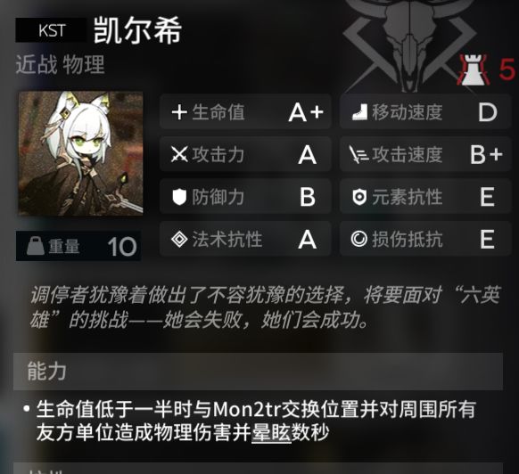 最后猜想从皮肤描述看,泰拉后期将完全源石化,但那时凯尔希还没有死,所以这个我稍微放心,牢凯应该不会这么容易死的。