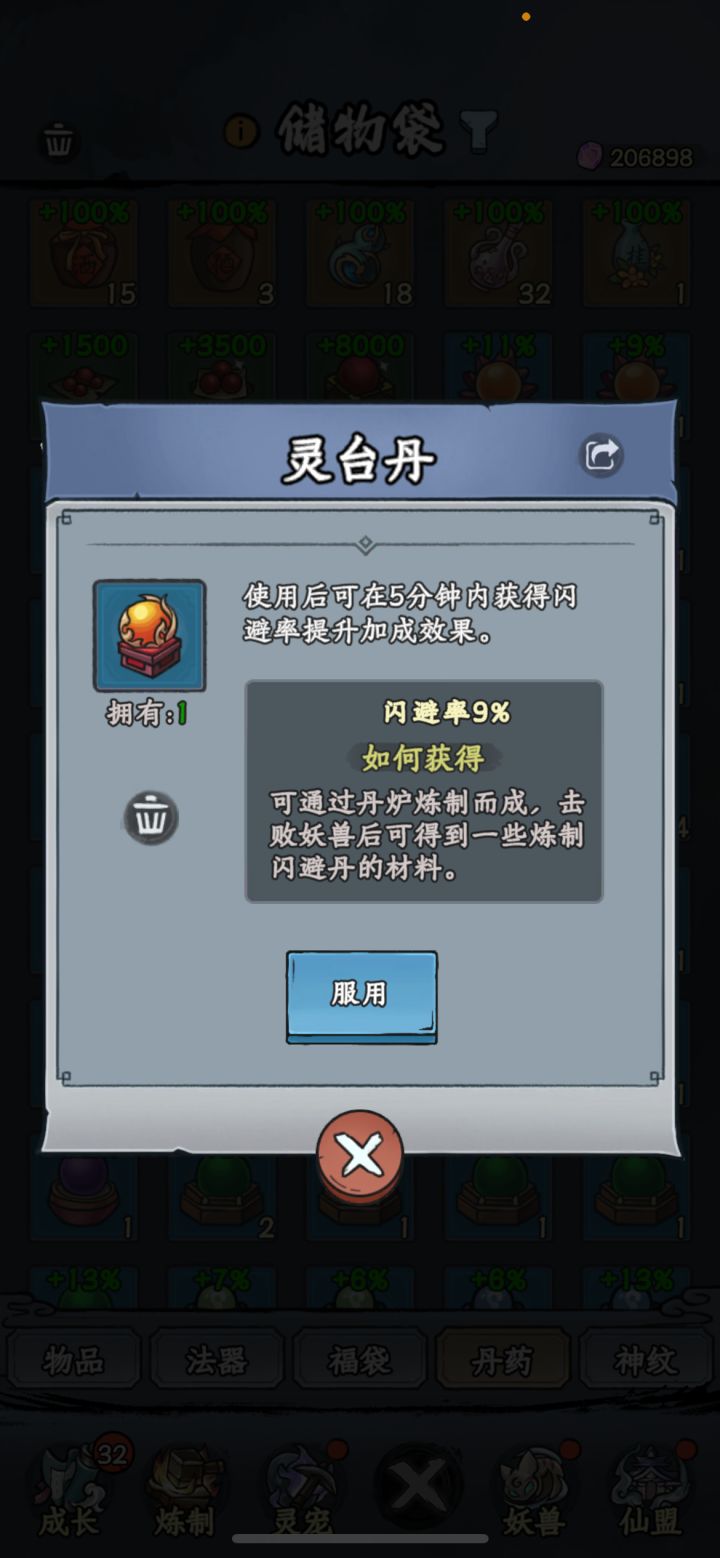 • 灵台丹评分:92分。提升闪避率效果明确,短时间增益在实战中实用性强,美中不足是持续时间较短,扣8分。