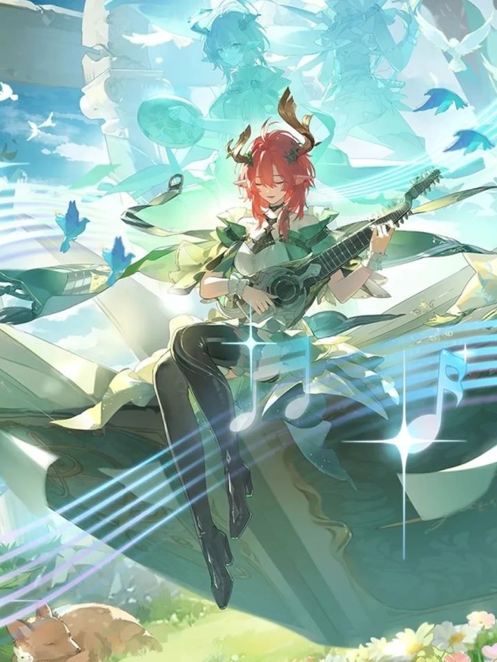 身为吟游诗人的夏空,武器似乎是本书,特定情况下会变成乐器,飘动的音符也符合官方给她制定的人设,黎那汐塔的吟游诗人,自由且真诚,在旅途中传颂着圣女与英雄光辉灿烂的诗篇,这些诗唱咏着有关人的一切,包括奇迹。